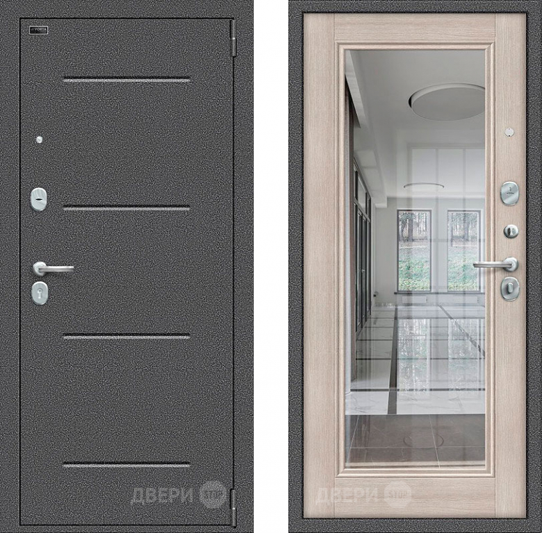 Входная металлическая Дверь Bravo Porta S-2 104/П61 с зеркалом Капучино в Истра 860х2050 мм