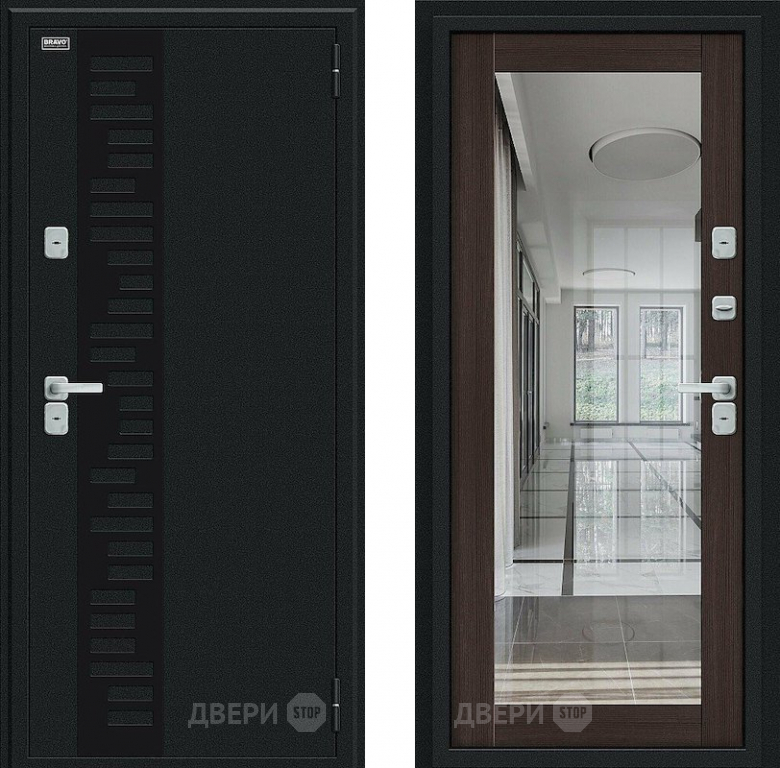 Входная металлическая Дверь Bravo Thermo Флэш Декор Букле черное/Wenge Veralinga в Истра 860х2050 мм