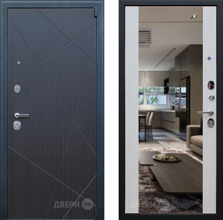 Входная металлическая Дверь АСД Вектор с зеркалом Лиственница белая в Истра 860х2050 мм
