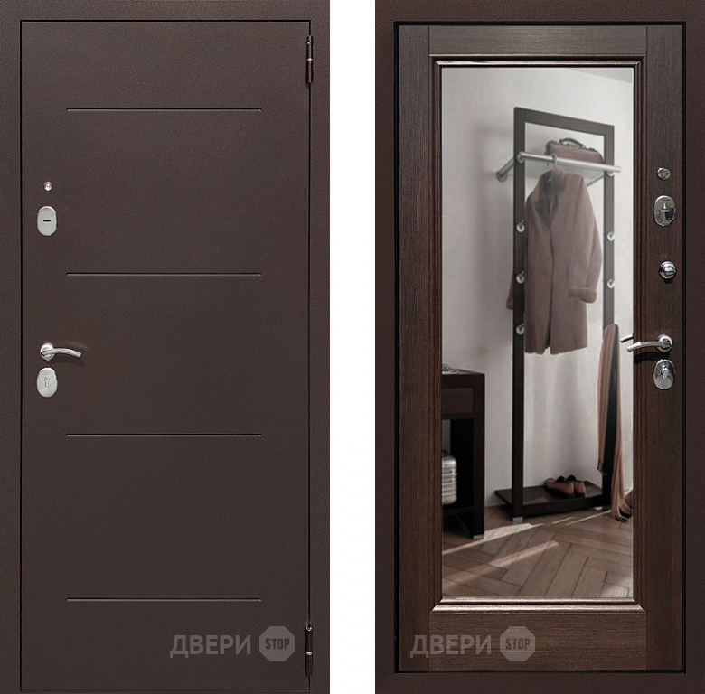 Входная металлическая Дверь Престиж 100 с зеркалом Медь/Венге в Истра 860х2050 мм