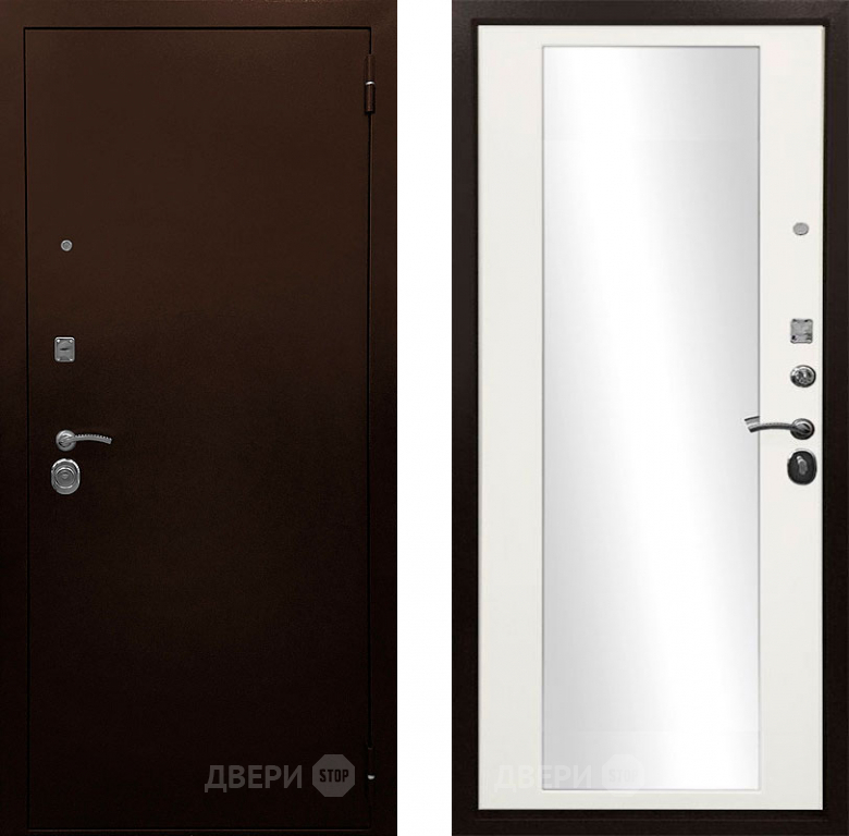Входная металлическая Дверь Ратибор Рим 3К зеркало Белый матовый в Истра 860х2050 мм