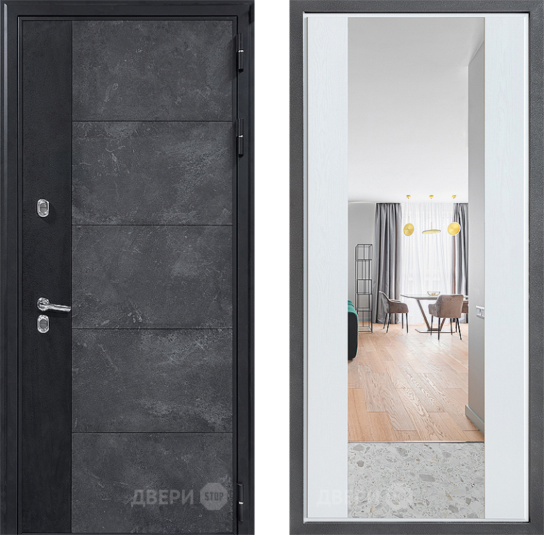Входная Дверь Дверной континент ДК-15 Бетон ТЕРМО ФЛЗ-1 Зеркало Белое дерево 860x2050 мм