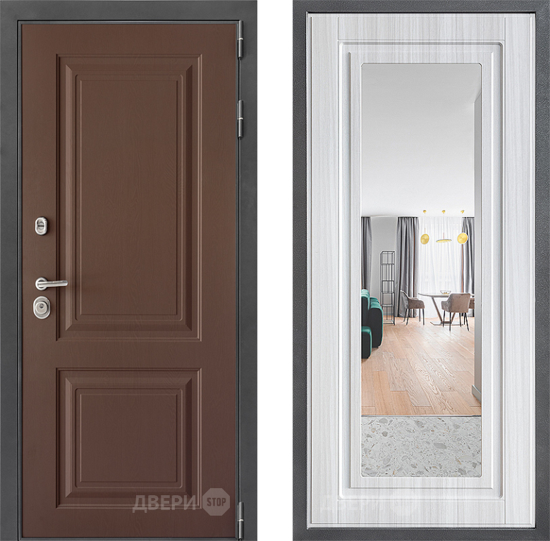 Входная Дверь Дверной континент ДК-3/729 ФЛЗ Зеркало Сандал белый 860x2050 мм
