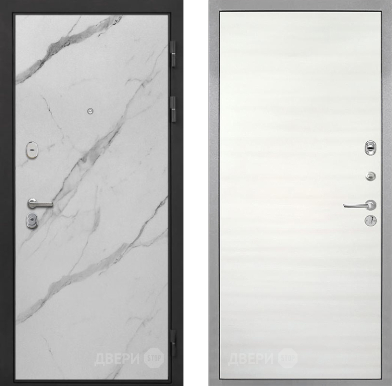 Входная Дверь Интекрон (INTECRON) Гектор Мрамор Арктик Гладкая Дуб сильвер поперечный 860x2050 мм