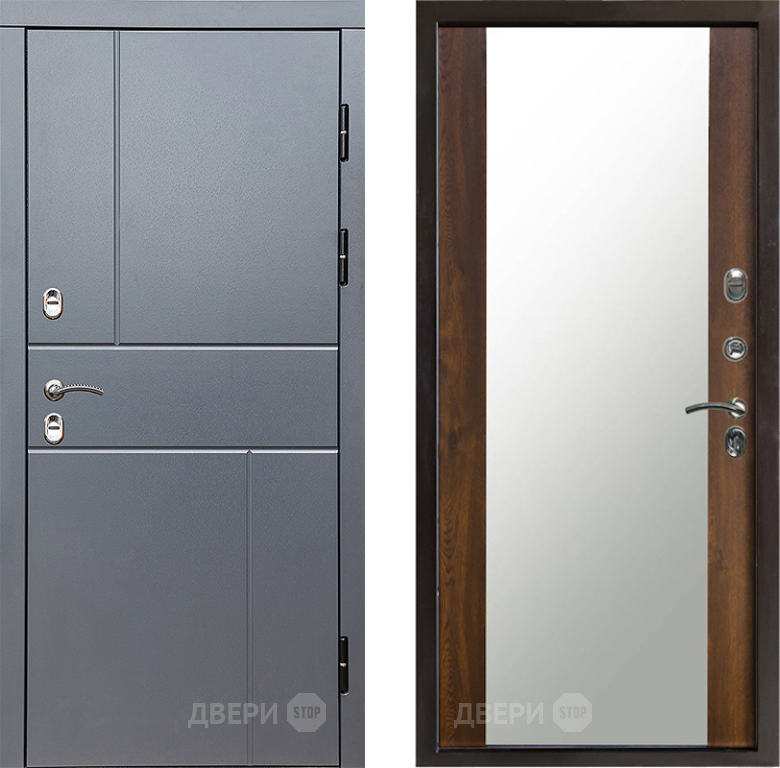 Входная Дверь Престиж TERMO с терморазрывом Горизонт Грэй Зеркало Дуб 860x2050 мм