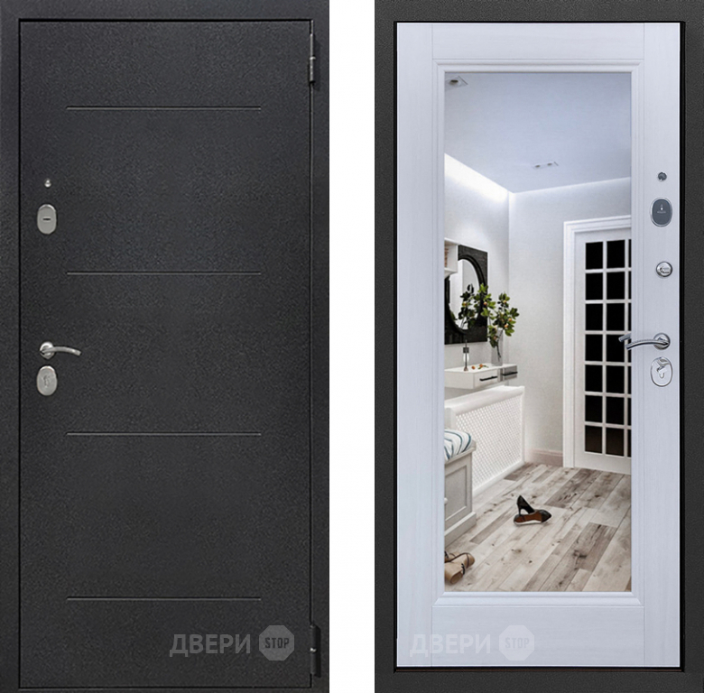 Входная металлическая Дверь Престиж 100 с зеркалом Шелк/Лиственница белая в Истра 860х2050 мм