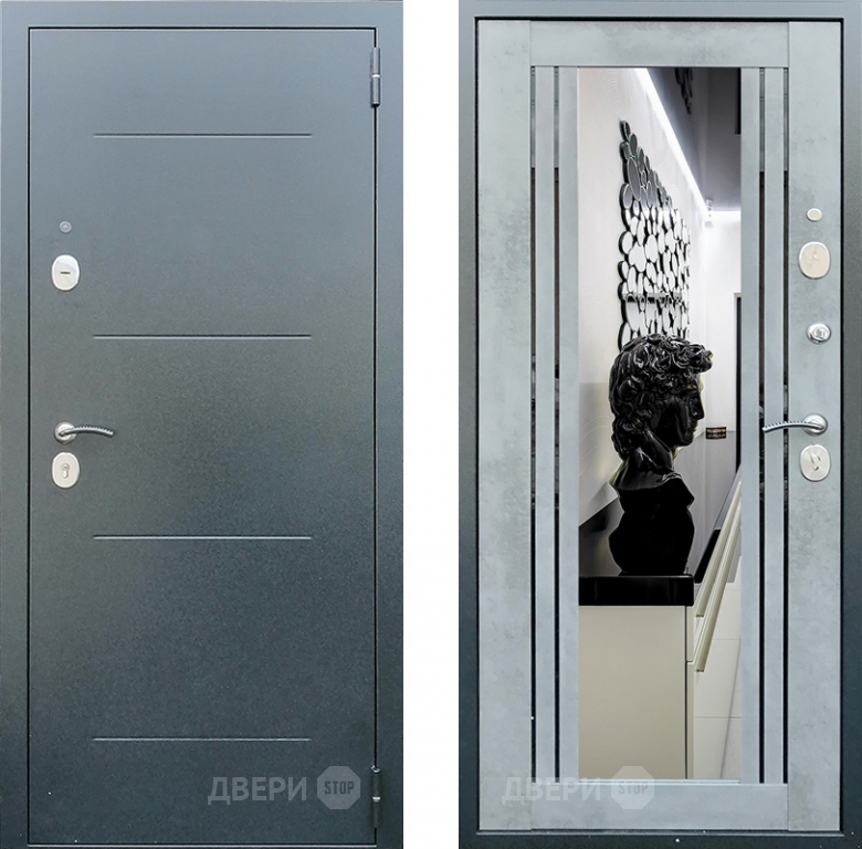 Входная металлическая Дверь Престиж Люкс с зеркалом Бетон в Истра 860х2050 мм