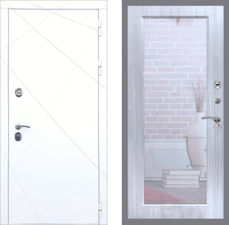 Входная Дверь Рекс (REX) 13 Силк Сноу Зеркало Пастораль Сандал белый 860x2050 мм