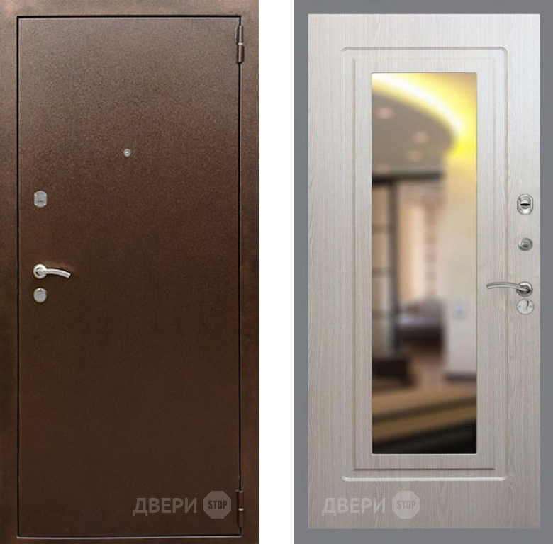 Входная Дверь Рекс (REX) 1А Медный Антик FLZ-120 Беленый дуб 860x2050 мм