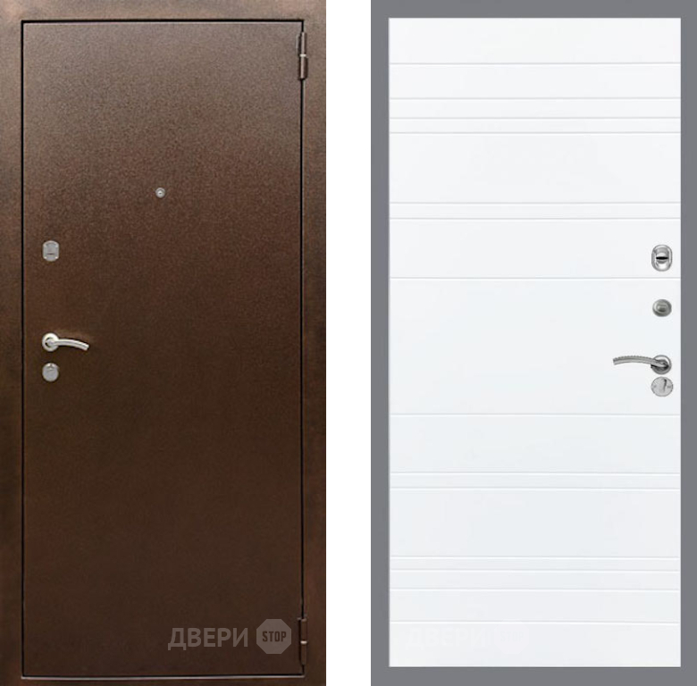 Входная Дверь Рекс (REX) 1А Медный Антик Line Силк Сноу 860x2050 мм