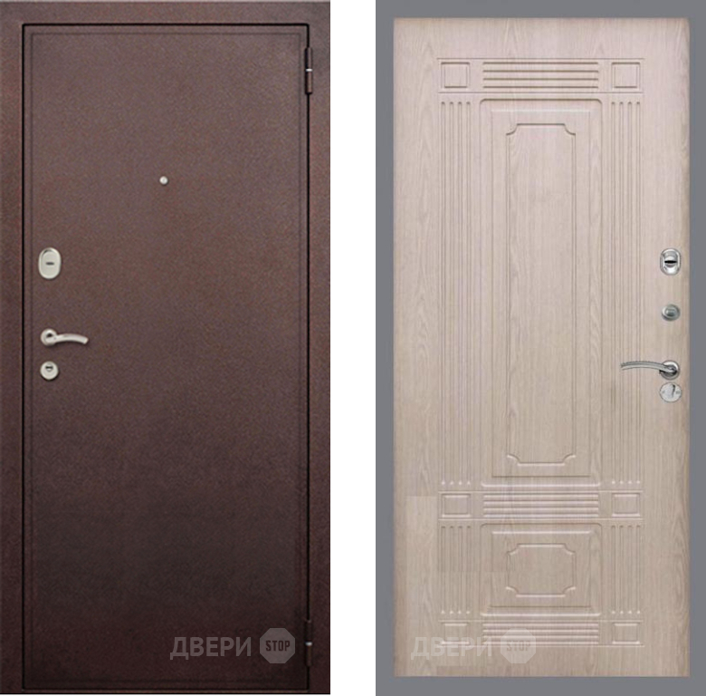 Входная Дверь Рекс (REX) 2 Медный Антик FL-2 Беленый дуб 860x2050 мм