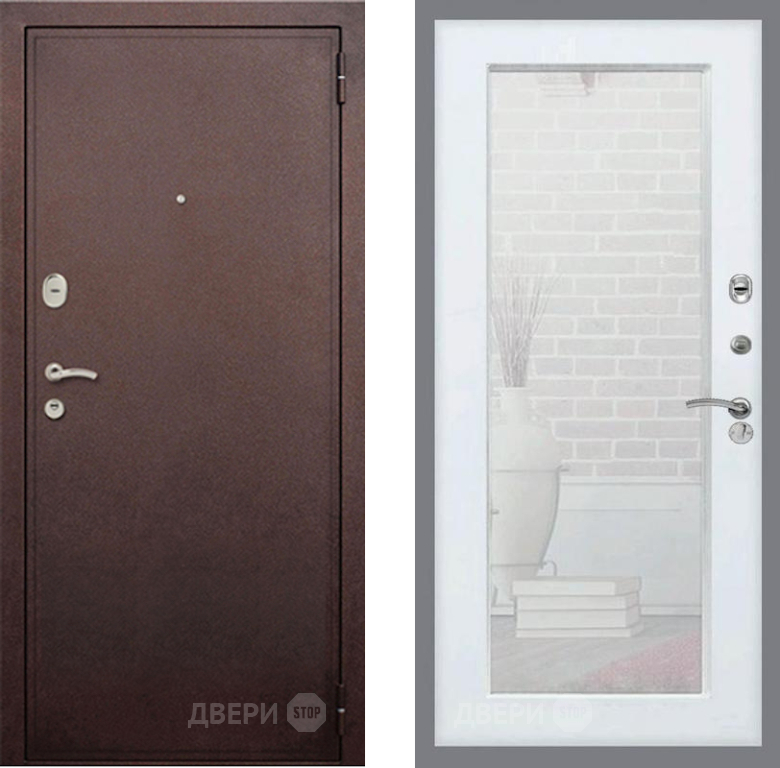 Входная Дверь Рекс (REX) 2 Медный Антик Зеркало Пастораль Белый ясень 960x2050 мм