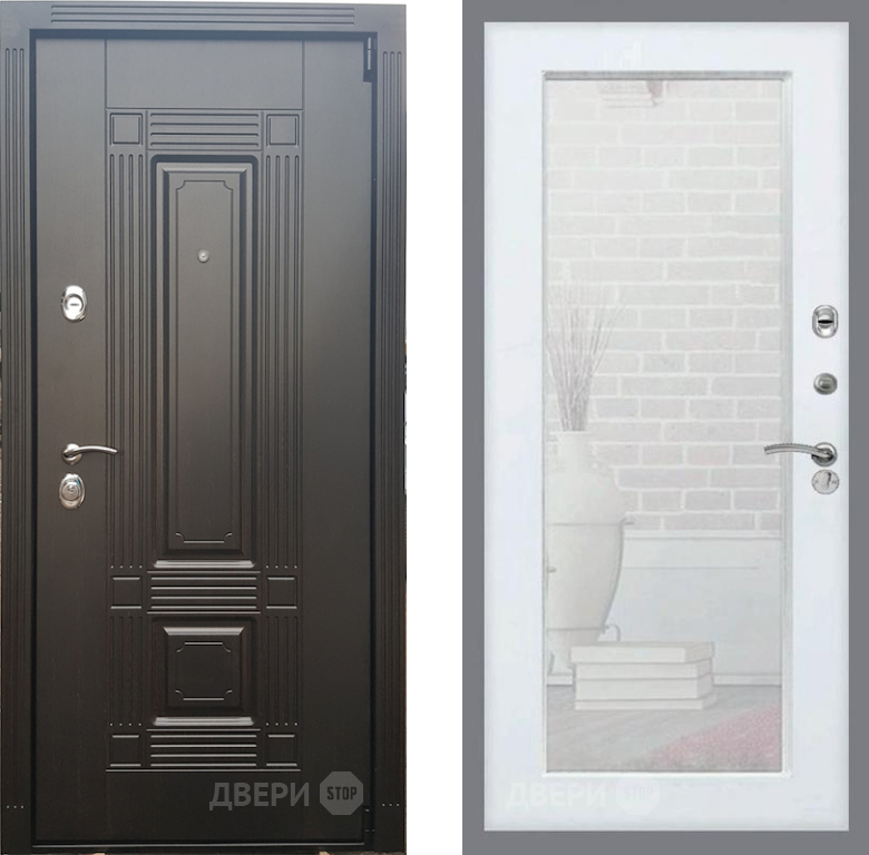 Входная Дверь Рекс (REX) 9 Зеркало Пастораль Белый ясень 860x2050 мм