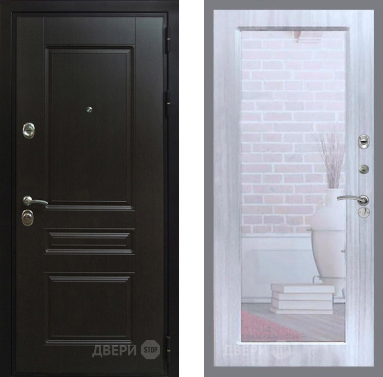 Входная Дверь Рекс (REX) Премиум-Н Зеркало Пастораль Сандал белый 860x2050 мм