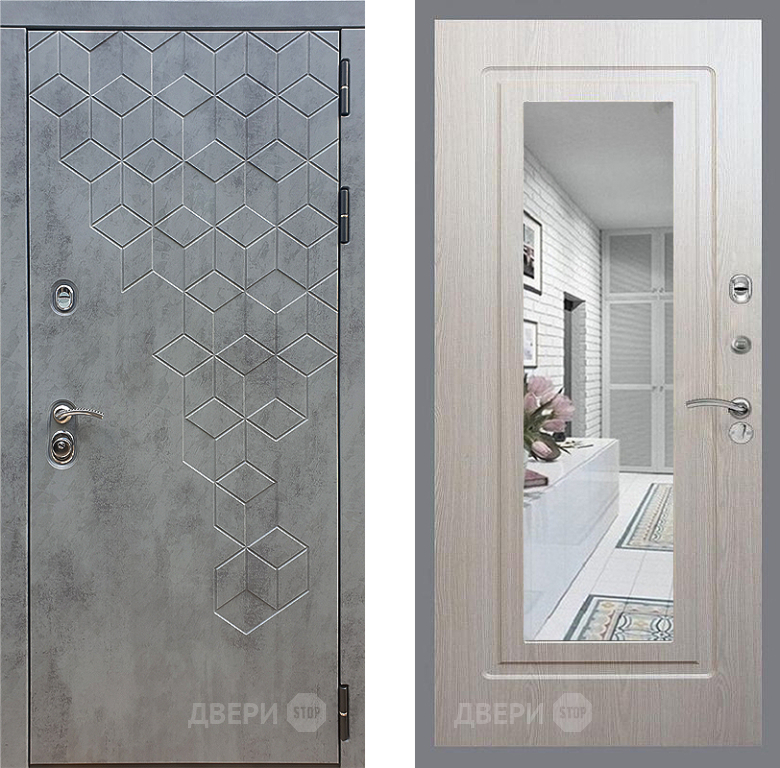 Входная Дверь Стоп БЕТОН Зеркало ФЛ-120 Беленый дуб 860x2050 мм