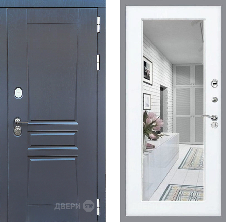 Входная Дверь Стоп ПЛАТИНУМ Зеркало Силк Сноу 860x2050 мм