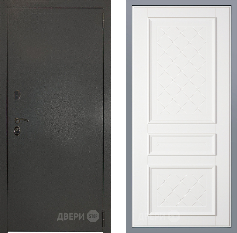 Входная Дверь Заводские двери Эталон 3к антик серебро Урбино Белый софт 860x2050 мм