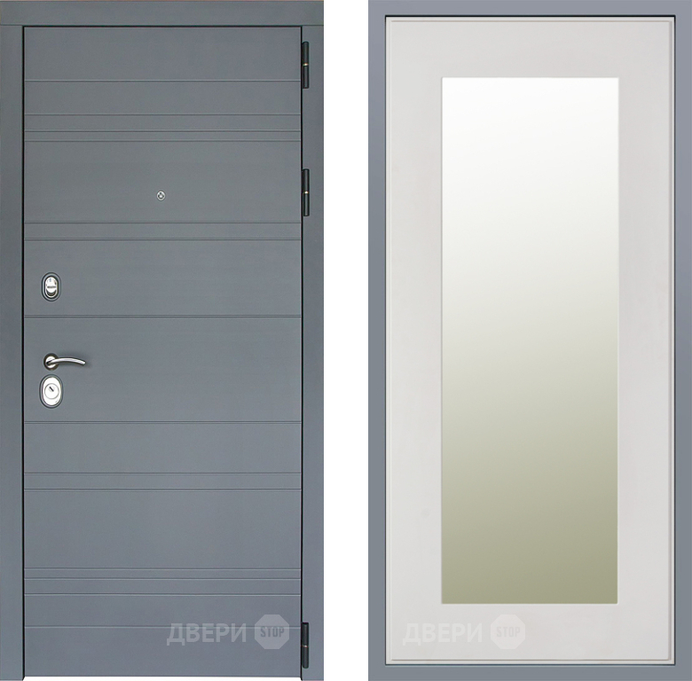Входная Дверь Заводские двери Лира Софт графит Зеркало Модерн Белый софт 860x2050 мм
